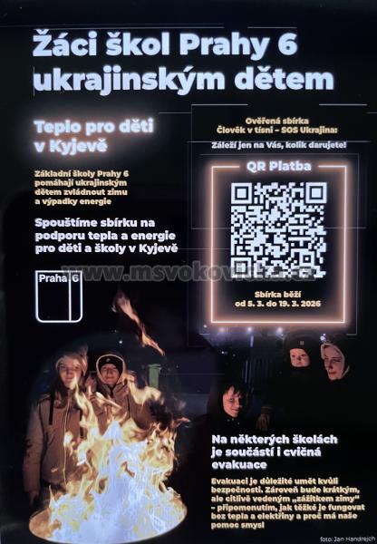 naše mateřská škola se připojuje k iniciativě základních škol Prahy 6, které pomáhají ukrajinským dětem zvládnout zimu a výpadky energie. Spouštíme sbírku na podporu tepla a energie pro děti a školy v Kyjevě.